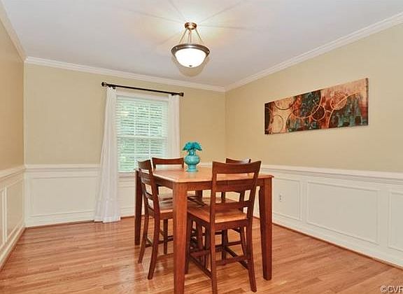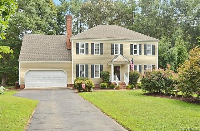MOTIVATED SELLER SAYS, "BRING OFFERS!" Wonderful Colonial in desired Woodlake! The exterior is well maintained and boasts a 2 car garage. Just inside you will find the charming foyer with crown moulding and refinished hardwood floors that run throughout the main level. To your right is the formal living room and adjacent is the formal dining room with shadowbox detailing. Next up is the spacious kitchen that has a convenient planning desk and a terrific eat-in area with a bay window. Meander on into the family room and behold the brick fireplace as the focal point of the room. Follow the back staircase to the second level and snag some shut eye in the comfort of your large owner's suite with an attached bath that has a double sink vanity, huge tub, and a separate shower! Enjoy cozy nights on the screened in porch that over looks a large level lot! Community features include walking trails, pool, clubhouse & more! Easy access to shops, highways, and excellent Chesterfield Co schools!