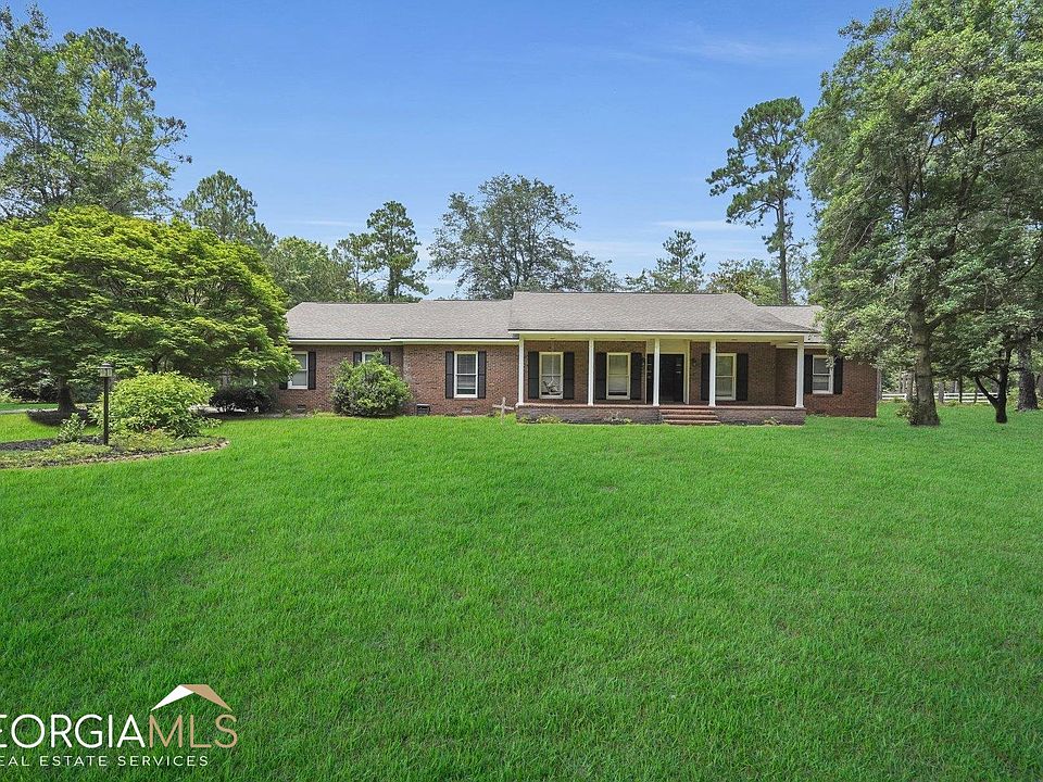 ** MOTIVATED SELLER!! ** Remodeled home on 9.38 acres, 45 minutes from new Hyundai plant. 3 bed / 2.5 bath all-brick ranch located just 10 minutes away from downtown Metter. COMPLETELY REMODELED w/ new hickory wood flooring throughout, granite counter tops, new kitchen cabinets, fresh paint, both bathrooms renovated with tile walk-in showers. There is a spacious formal dining room and living room with a brick fireplace. Beautiful kitchen with newer stainless appliances, a large island w/ a breakfast bar, and a seating area. Huge Master suite w/ his & her closets and master bath with double vanity, walk-in shower and separate claw foot soaking tub. The other two guest bedrooms are spacious and share a full bath. Half bath conveniently located off the mudroom that has access to the back porch great for guests. The enormous laundry room offers plenty of space, built-in cabinets, and a utility sink. Extended covered back porch that has a bar, built-ins, and an outdoor kitchen. The backyard also has a brick fire pit, a 20 x 40 metal building, and a 14 x 24 pump house w/ extra storage space. Approximately 2.5 acres are fenced with white wood fencing so bring the horses! Relax and enjoy the warm summer breeze while grilling and hanging out with friends and family at this peaceful country oasis. This home has so much to offer. CALL TODAY!