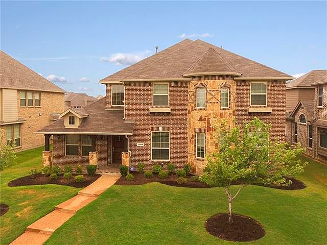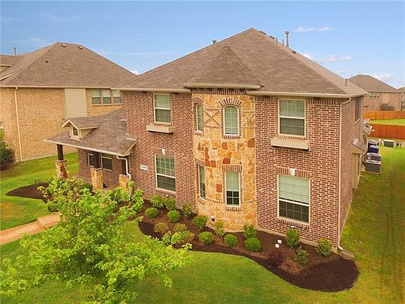 Open concept with floor to ceiling windows and stone (gas) fireplace in the family room. Hand-scraped, nail down hardwoods throughout family, study and formal dining. Gourmet kitchen with SS appliances, double oven. Spacious Master Suite includes separate shower & large walk in-closet. Guest bedroom down. 2 Bedrooms up! Loft-style game room - Theater features built-in microwave & fridge.WALK to Frisco ISD (elementary, middle and high) schools,