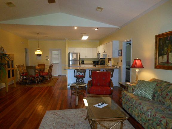Mobile Bay House.Totally renovated in 2006. Stainless appliances, open kitchen, living Rm, dining rm. Split bedroom plan. 2 bedrooms and bath on one side of living area and 2 bedrooms and bath on other side. Hardwood floors throughout. Screen porch 7'8 x 41'5overlooking the Bay. Large storage room under the house 19x17 as well as parking for cars. Irrigation system on bay side of yard.Seperate meter. As a vacation rental it has been generating 30,000-40,000 per year. Furnishings are negotiable