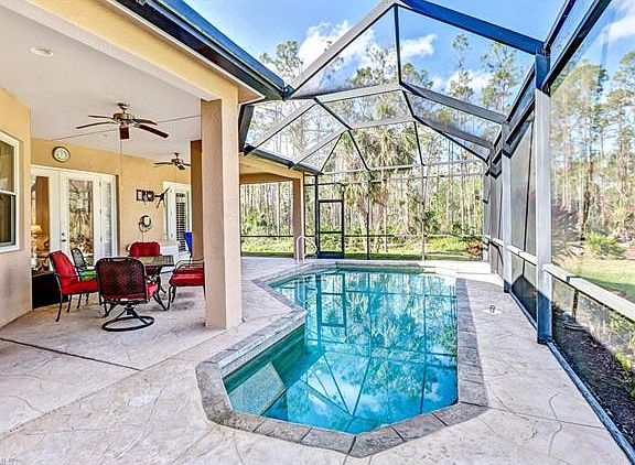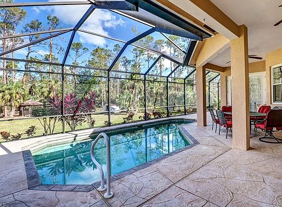This stunning pool home has it all! The salt water pool overlooks a lush, beautifully manicured lawn and gazebo. Step inside this 2621 SqFt well maintained home where no details has been spared! The kitchen features granite counter tops, stainless steel appliances, a center island, walk-in pantry and a bright skylight which floods the room with natural light. Enjoy the open floor plan overlooking the tranquil view of the pool and yard, perfect for entertaining. This home boasts 4 bedrooms plus a den, 3 full bathrooms and a 3 car garage situated on a 2.73 acre private lot. Dual sinks, a roman tub and two walk-n closets are in the master bathroom. Additional extras include hurricane shutters, volume ceilings, modern light fixtures, tile floors and wood laminate throughout, faux wood blinds, plantation shutters and more. No HOA or pet restrictions in this neighborhood. This home is only 2.5 miles away from the new Publix Super Market at Neighborhood Shoppes at Orangetree. **Be sure to check out the 3D virtual tour in the links**