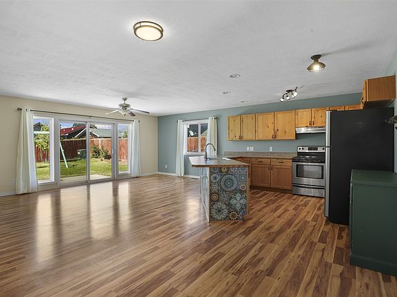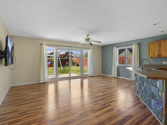 Great one level home, three bedroom, two bathroom with fully fenced yard. Lots of fresh paint, adorable playhouse in backyard with raised flower beds, shed also stays. Primary bedroom has attached bathroom. Great open concept with kitchen, family room and sliding door right out to backyard! Listed by Quenby Klippenes