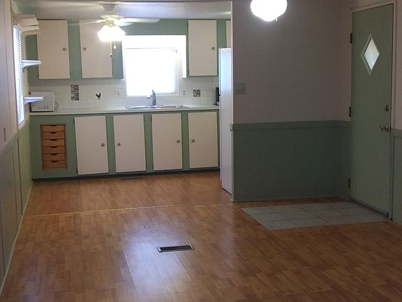 Nice updated mobile home in quiet over 55 mobile home park .Bright interior, nice kitchen with dining area. Easy access shower in the bathroom, 2 bedrooms with large closets and built in drawer cabinet. Covered front entry with access ramp, covered rear carport, storage shed provided by the park. New flooring in master bedroom. Space rent is $305 per month and includes water, sewer and trash.