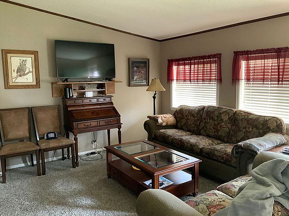 New carpeting , newly painted inside and outside.2 sheds.All appliances stay. Central air conditioner. Lot # 21 55 + community. No large dogs allowed in the park. Buyers must be approved by management. Lot rent includes water sewer and trash.