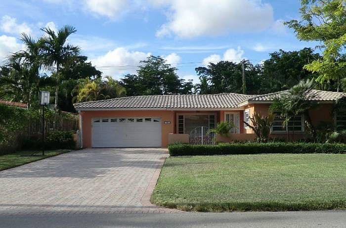 Well kept property w/plenty of green space & recently manicured landscaping. Has 3 good sized rooms & 2 1/2 baths in the main living area; the 4th smaller bedroom & bath built under code are in the ample garage area & can serve as either a maids or in-laws quarter. Boasts flow through social spaces that include formal dining room, living room & great/family room with high beamed ceiling. Very bright & space enough for a small wet pool. W/in walking distance to UM, Doctor's Hospital & Riviera County Club.