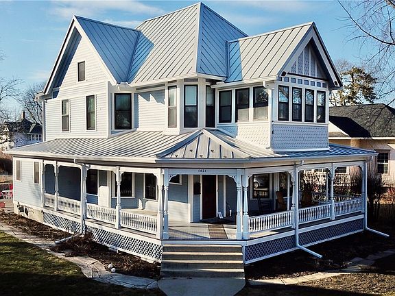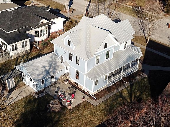 Reduced!! Stunning 2 story house in North Grinnell! This meticulously cared for, restored 4-bed, 2-bath residence offers modern comforts alongside its rich heritage. Step inside, discover a kitchen appointed with quartz countertops and a 5-burner gas range, alongside a living room featuring a soapstone wood stove and stained glass accents. With radiant heat, tank-less water heater, and updated plumbing and wiring, this home seamlessly blends historic craftsmanship with modern day convenience and reliability. Explore three bedrooms upstairs and a downstairs bedroom, all bathed in natural light. A new metal roof, installed in 2018, complements the large wrap-around porch, while central air and new attic windows add contemporary comfort. The full basement, woodshed, and attached garage provide ample storage, while a low-rise deck and concrete driveway enhance outdoor living on this large over size lot. Take a look! Walk through! Take a look! Who knows? This could be your piece of Grinnell's history!