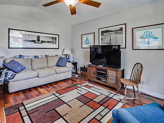 Super cute updated home with nice open floor plan! Updates include ceramic tile floor in the kitchen, hall bath & laundry, new roof & gutters in 2020, some new interior paint, new water heater in 2019, new exterior stain in 2021. Living room with vaulted ceiling opens up to the dining area, both with laminate flooring. Nice kitchen has granite counters (2018) & all appliances remaining, including refrigerator. Owner's suite with new carpeting & full bath. Great deck space out back for entertaining! Welcoming front porch, concrete walkway & beautiful landscaping! Fantastic home!