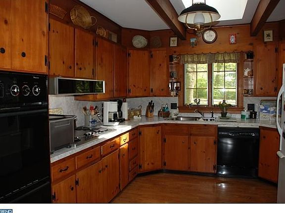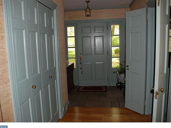 This Jim Lees Ranch American Ranch home is located deep within in the private neighborhood of Penn Wood, adjacent to the Westtown School grounds. The association includes access to a 2+ acre pond and recreational area, as well as neighborhood social activities and events. Guests enter the front through an open foyer with original flagstone flooring transitioning into refinished random width oak hardwood traveling between all rooms in this one-level home. To the left through solid wood double doors, the office has a deep bay window with original millwork, including built-in bookcases, and a generous closet allowing for use as a possible 4th bedroom. Directly ahead through a second set of double doors, a formal Living Room has a Fireplace with floor-to-ceiling wainscoting and decorative trim and a large window overlooking the property. On the west side of the home you will find a very large Great Room with exposed timber construction, a walk-in brick Fireplace, and an early open-concept to a cherry kitchen. Just off the mudroom entrance from the two car garage is a powder room, walk in pantry, and functional laundry space. On the east side of the home is the sleeping quarters with two sizable bedrooms, a full main bathroom, as well as a full master suite with private views of the rear yard. The rear screened porch with flagstone flooring overlooks the lower side yard, which is lush with a tall canopy of mature Beech, Hickory and Oak trees.