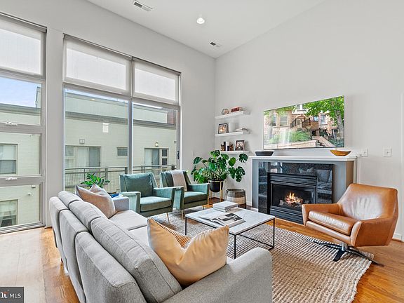You can't beat the view of 4th of July fireworks from this private penthouse roof terrace - and it could be yours! No compromises here - outdoor space, views, three large bedrooms plus a sun-filled den, garage parking, vaulted ceilings, a fireplace and so much more. Meridian Heights Condominium is a 14 unit community just off 14th Street. Penthouse unit 302 is a split-level plan with an open living level, two bedroom levels and a rooftop level with a den, utility room and private terrace. The living level has 12 foot ceilings, floor to ceiling casement windows, gas fireplace, Juliet balcony and a powder room for guests. The open kitchen with breakfast bar has Kitchen-Aide, stainless steel appliances that include a gas range, side-by-side refrigerator with ice maker and door dispensers, and an over-range microwave with external venting. The dishwasher is Bosch. Hi-gloss painted cabinets, stone counters and stainless steel sink create a custom look. Step down to two ample bedrooms that share a full, updated bathroom with a tub/shower, Toto toilet and a gorgeous designer tile floor. The bedrooms have big closets and north-facing windows. Step up a level to a private primary bedroom with a walk-in closet and an ensuite bathroom featuring a tiled shower, Toto toilet and Delta faucets. Just outside on the stair landing is a custom storage system and cozy window reading nook. Up one more level to the roof and a sunny den with sliding glass doors on two sides. Open the doors to the stunning private roof terrace with monument and rooftop city views, plus a Weber gas grill and patio furniture that convey. Also on this level is a large walk-in utility room with a stacked washer/dryer, tiled floor, the HVAC system (2019) and water heater (2022). Hardwood floors, recessed lighting, custom design features, and window treatments throughout. Convenient, walkable location less than a block to Meridian Hill Park. Columbia Heights or U Street Metro Stations are 1/2 mile. Amenities around the corner include Streets Market (1 block), CVS, Tatte Bakery & Cafe, Rooster & Owl, Seven Reasons, Sweetgreen, Elevate Fitness, the YMCA and much more.