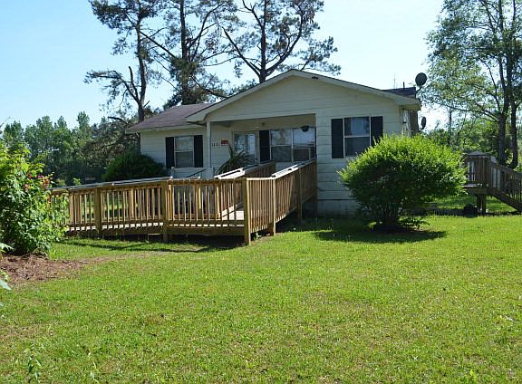 Modified with bathroom with XL- Walk- in Tub with jet massage! Reinforced floor, door widen for handicap access. Bedroom door widen for handicap ramp installed for wheelchair access step installed. Front handicap ramp installed for wheelchair access, Storage shed, blocked pump house, vapor barrier installed underneath house, window A/c & auxiliary wall heater,$20,000 improvements,AS IS WHERE IS