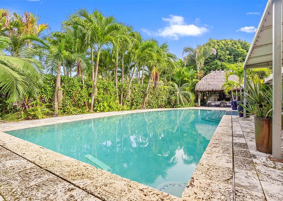 Welcome to Coral Ridge Drive! This is one of the most desirable areas in Coral Ridge! Step inside to discover a spacious and well-designed layout encompassing 2,492 square feet of living space. The home features four bedrooms, two bathrooms, and kitchen with XL Island with seating for 6, Perfect for accommodating family and guests. The yard is a true oasis, boasting mature oak trees, large pool with stunning Coral deck and Tiki hut, ideal for entertaining or simply relaxing in your own tropical paradise. This home is perfectly situated just a stone's throw from A-Rated Bayview Elementary School. Enjoy the convenience of being close to excellent schools, shopping, dining and entertainment options.