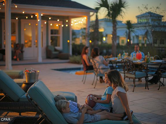 The Hutchinson Plan by Harris Doyle Homes is situated on a conservation lot within Indigo Lakes, the newest phase of the popular waterfront community, SweetBay. In addition to the four large bedrooms, there is a study, loft and mudroom. The covered front porch flanks a porte-cochere that enters into a spacious motor court. A third and separate garage bay has become a finished space for a home gym, tailgating room or whatever you can imagine! The main-level primary suite features a tile-to-ceiling walk-in shower and large walk-in closet. The island kitchen includes stone countertops, decorative tile backsplash and options for a chef's kitchen. SweetBay is a walkable and golf-cart friendly community with unrivaled amenities: dock with Bay and Gulf access, boat launch for kayaking, private beach, paddle boarding, fishing, parks, junior olympic resort pool complexes, fire pits, grilling areas, sports court, miles of trails, Publix-anchored town center and future amenities including a marina! New home buyers even get priority access to top-rated University Academy, the #2 K-8 school in the state of Florida!