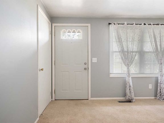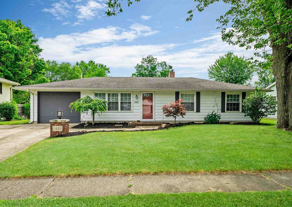 Beautifully updated ranch style home perfectly sized with the convenience of one level living. On trend cool neutral colors throughout for easy move-in. A huge picture window provides plenty of natural lighting in the living room. New carpet in living room & two of the bedrooms. The light & bright kitchen is equipped with white cabinetry, charming scalloped trim above the window over the sink, plus stainless-steel appliances will remain. The adjacent dining area, kitchen, living room, hallway & two bedrooms are freshly painted. All three bedrooms are good sized with big closets. Updated bathroom features new flooring as well as new tile for the bath surround. Fully fenced big backyard space complete with pergola covered patio for outdoor entertaining. Single car detached garage with double wide driveway for plenty of parking. Additional details include white trim, ceiling fans, gas furnace & central air replaced 8 years ago, newer gas water heater 4 years old, new insulation 7 years ago, washer & dryer remain, plus 8x10 backyard shed for lawn maintenance storage. Fabulous location in an established neighborhood, walking distance to schools & nearby Jury Park.