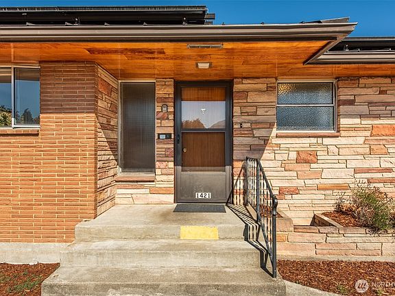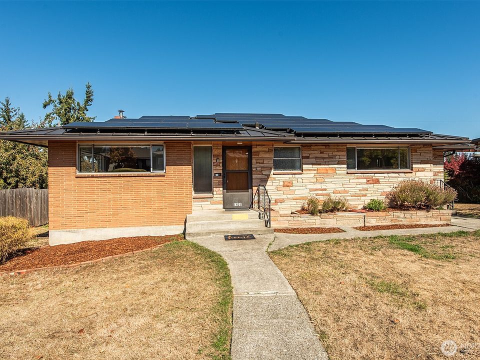 Beautiful home on oversized lot with mountain views. Built in 1955, this one-story home with a daylight basement has a Midcentury Modern feel. Spacious 2,248 square feet of bright living space. Main level includes 2 bedrooms + 1 full bathroom, large living room, dining room and kitchen with eating space. Lower level offers a second living room, office that could be used as a 3rd bedroom, 3/4 bathroom, sauna & soaking tub. Each level equipped with a ductless heat pump and wood stove. One car attached garage has tons of extra space for hobbies & storage, includes x3 220 outlets. Metal roof with solar panels offers longevity and a reduced utility bill. Private backyard has a patio, storage house and off-street parking. Great central location!