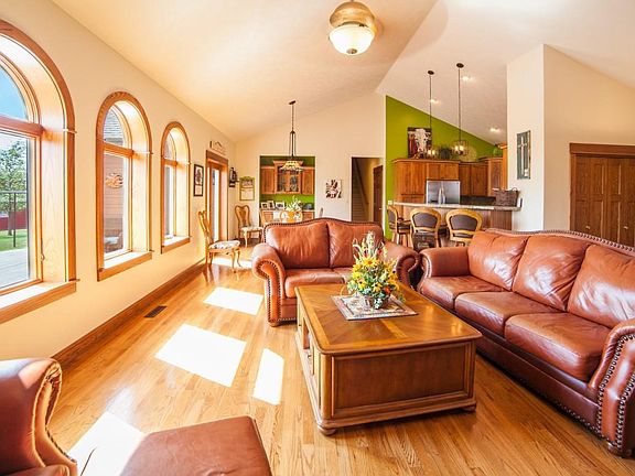 Beautiful 4 bedroom, 3 bath home on 36 acres. ICF construction. Main floor features 3 bed, 2 bath, bonus room above garage, solid oak flooring, w/b fireplace. Basement features 1 bed, 1 bath, kitchenette, porcelain wood look tile. Patio is 27' x 25'. Shop is 30' x 60' with 10' overhang, 12' overhead door, kitchen/office heated & cooled with 1/2 bath and separate septic, New Geo-thermal Heat Pump 2015, New roof on house and shop 2019. Fenced, corals, pond with dock and paddle boat, chicken coop. One of the sellers is a licensed Realtor in the State of Nebraska.