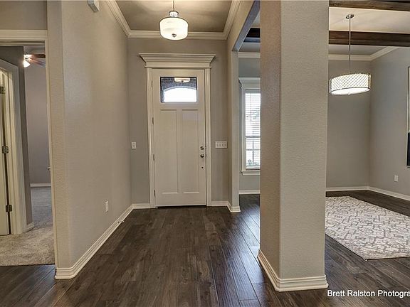 This one level home is a dream. You'll love the breezy flow of this open floor plan. Beautiful 4 bedroom home with designer finishes, custom cabinets, covered back patio, plumbed for gas grill on covered back patio, stainless steel appliances, community pool, clubhouse, basketball court and fishing pond. Located behind Bentonville West High School and in the highly desired community of Diamond Estates.