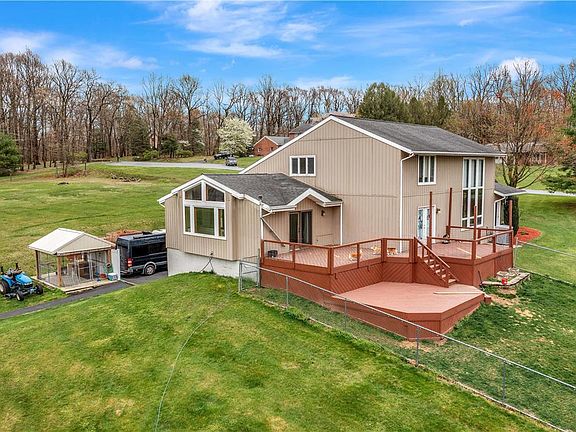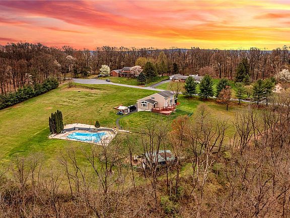 Located in the bucolic hills of Weisenberg Township. Enjoy the summer breezes on large multi level deck overlooking hills and pasture. Entertain around the recently renovated masonry pool during those hot summer days. Fenced area for dogs includes a pavilion area currently used for kennel. Home has wide hallways, two first floor bedrooms as well as full bath for those looking for first floor living. Two additional bedrooms with en-suite baths on upper level. Relax in the expansive family room with view of the grounds and the surrounding hills. The custom kitchen has maple cabinetry, high grade granite counter-tops, center island and additional eating area. Additional living area in basement level. I-78 interchange and Route 222 are only minutes away.