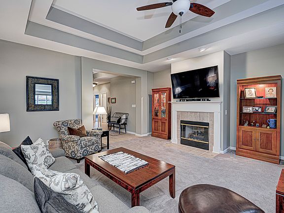 This extremely well-maintained, high-end home built by Greg Allen, is located in the coveted Heron Ridge Community. Home features all brick exterior, 2000+ sq ft of living space, split bedroom layout w/3 bedrooms, 2 full baths. Magnificent tray ceiling in the Entrance Foyer, Great Room and Primary Bedroom! Enjoy the Great Room complete with gas Fireplace for those cold winter evenings and transition to the beautiful Sunroom with ample natural lighting for the other three seasons! Great spaces to utilize while discussing what to do with all your free time as the HOA maintains the lawncare, including irrigation system, snow removal and home exterior maintenance. Don't miss out on this fantastic opportunity, schedule a showing today! Heron Ridge is a 55+ Community.