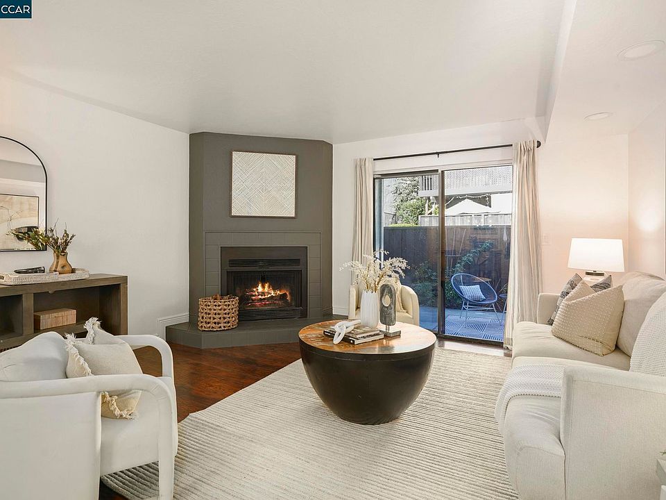 Welcome to your new home! This charming 2-bedroom, 2-bathroom first-floor condo is perfect for comfortable, convenient living. Enjoy the updated kitchen featuring sleek quartz countertops, contemporary finishes and a gas range!!! Your primary bedroom has an en-suite that has been beautifully renovated to offer a custom shower and a fresh, clean feel. The condo boasts tons of brand-new lighting creating a warm and inviting atmosphere, with a corner fireplace for cozy evenings at home. You’ll appreciate the convenience and space of a private 2-car garage, plus the ease of an in-unit washer and dryer. With easy access to amenities and a well-maintained community, this home is designed for comfort and ease. Close to shopping, HWY 4/680 access, and Highly rated schools. Minutes from downtown waterfront and restaurants! Don’t miss out—schedule your viewing today and experience the perfect blend of convenience, style and comfort.