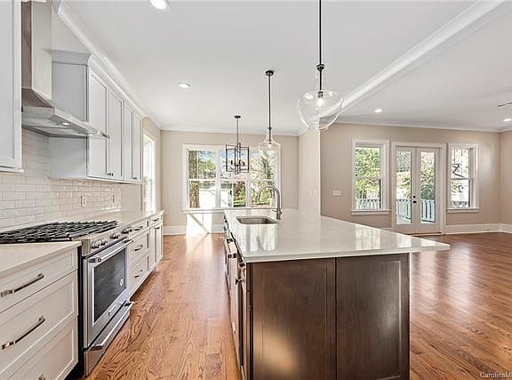 Period inspired Arts and Crafts home newly built in premier urban community. Sought after floor plan with oversized rooms and 10ft main level ceilings means this home lives large. Standout kitchen with custom build Marsh Cabinetry made in NC, quartz countertops, KitchenAid appliance package, butlers pantry and large walk-in pantry. Large living area off kitchen with access to sizable partially covered rear deck. Master retreat with spa caliber bath and huge walk-in closet. Bathrooms feature premium tile selections, Marsh vanities and frameless glass showers. Site finished oak flooring throughout, heavy trim and molding package, premium light selections, solid core doors. Correctly proportioned exterior design straight out of the 1920's with full brick veneer foundation, oversized front porch, exposed rafter tails with bead board soffits. Detached two car garage in large rear yard. Quality construction by respected area builder - Williams Farrow Builders.