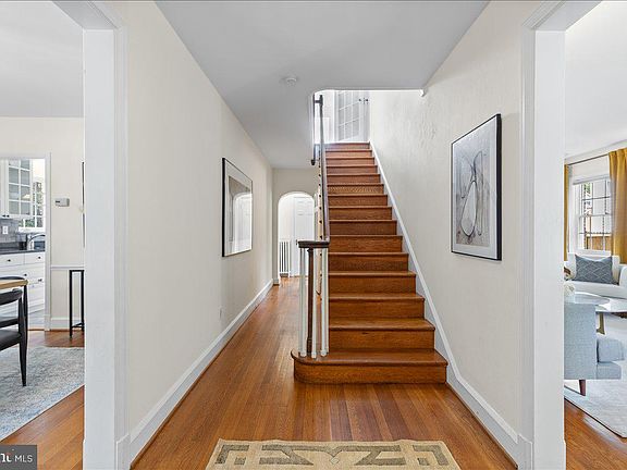 This captivating 1936 center hall colonial home showcases timeless elegance with modern updates. It offers over 3,000 square feet of living space spread across four finished levels, featuring four bedrooms, three bathrooms, and generous living areas. As you approach the house, you'll find a brick walkway leading to the covered entrance. Upon entering, you'll be greeted by a spacious foyer leading to the back of the home, reflecting the true essence of a center hall colonial layout. On the right, there's a spacious living room with a gas fireplace and an original mantel, while on the left, you'll discover a large formal dining room with chair rail molding and an original built-in china cabinet, setting the stage for elegant gatherings. The kitchen has been completely remodeled and now features an island with an induction cooktop, tile floor, granite countertops, ample cabinet storage, and French doors leading to the back patio and detached garage. Additionally, there’s a versatile additional room (den, playroom, or office) and a half bath on the first level. Moving to the second level, you'll find a sizable primary bedroom with an en-suite bathroom, two additional bedrooms, a second full bath, and a bonus room that could serve as a play area, an office, or even a fourth bedroom on this level. A flexible finished third level provides ample space for an office, guest bedroom, or playroom. The lower level includes a family room with built-in shelving, laundry facilities, a storage area/workshop, a toilet closet, and a walkout exit to the rear. Outside, the backyard features a fully fenced yard with a patio, a parking pad, and a detached garage. The central location of this property offers the best of both worlds—a quiet suburban lifestyle with abundant green space, just minutes away from all the amenities of downtown DC.