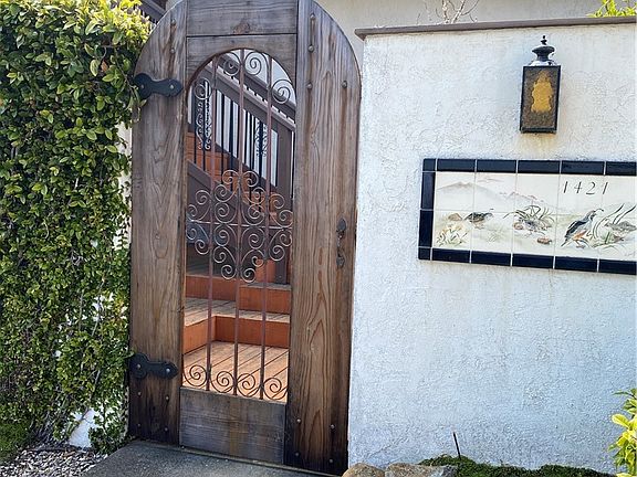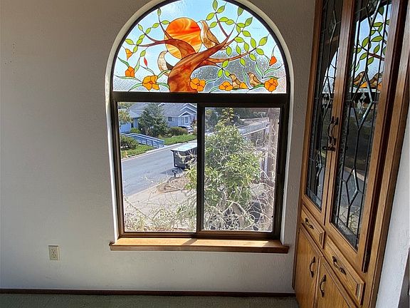 This is a Spanish Colonial Revival style custom home, built in 1979 is listed by the original owner! This is the first home built in Oak Ridge on Las Encinas that is located on the sunny side of the street with a panoramic view starting at Morro Rock and the bay spanning to Hollister Peak. Quiet neighborhood with curbs and streetlights flanked by a cul-de-sac on either end of the street. Vaulted ceilings frame the custom-made stained-glass windows by local artist, Sandra Kay Johnson are featured throughout the home are beautiful any time of the day as sunlight moves. Carmel Valley tile artist Diane Swift created the address marker at the arched front entry gate. Just beyond the gate is a pond for fish and plants to add drama and interest. Enter through double doors to the upper level where the primary bedroom, living room and kitchen are located. There is a large deck off the front accessed from the dining area. Notice the arched doorways, stained-glass and skylight in the unique primary bathroom. The kitchen has plenty of cupboard space with a Jenn-Air grill and a moveable butchers block. The lower level has three bedrooms, one full bathroom, laundry room and a bonus room used as an office or studio. The backyard is gently sloped, with beautiful live oak trees. The private back deck has a pergola with blooming wisteria, and room for a small garden.