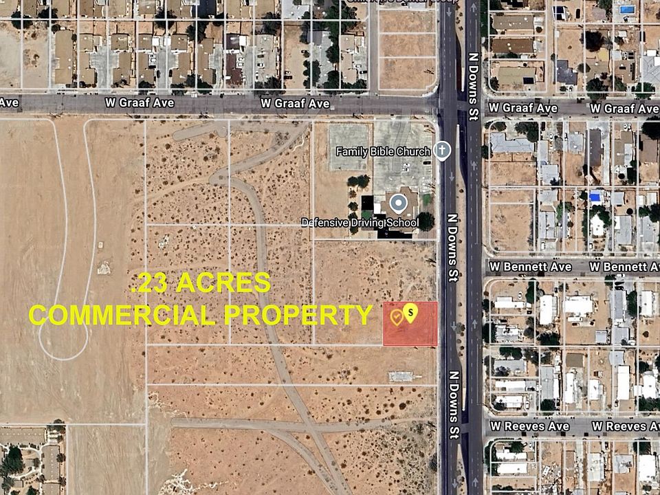 Owner will carry! Prime commercial property in the heart of Ridgecrest.This property has 8'' curbs and gutters with a driveway approaching . Survey completed with all corners professionally marked. Topographical map will be provided to the new buyer.There is a water meter on the property that cost $9174. If the new buyer wishes to upgrade the water meter they will be credited the $9174 towards a larger meter by the water company. There is a 4 sewer lateral to the property which was paid for and is currently valued at $5000. Buyer to verify all information provided herein including but not limited to current and future zoning, size, net size, dimensions, topography, easements, access, use, building permits, fees, approved uses and utility availability and costs..Buyers are advised to go to all the appropriate county agencies including Planning and Building & Safety to ascertain information pertaining to the subject\\property. This property is one of three adjacent properties available.