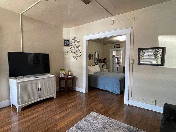 Comfortable Furnished Studio Apt for traveling professionals near Parkview/UC Health and Mineral Palace Park. This apartment is within walking distance to Parkview and just a short drive to CMHHIP or Evraz. For more information and rental applications, please visit us online at www. GrantFamilyInvestments. com. Please note that you will submit your background check and credit report through the Zillow app but you will still need to submit our paper application to be considered. Centrally Located near downtown Pueblo; across from Mineral Palace Park. The building is a historic Victorian Building with lots of old-world charm and character. This unit is a remodeled second floor pet free, smoke/vape free 1 bedroom studio apartment and features the following: 1 Roomy Bedroom 1 Bathroom with recently Tiled Shower Walk In Closet Living Room with Closet Nook for Extra Storage Built In Hutch Hot Water Heat and Window Unit for Cooling Kitchen with Gas Stove and Refrigerator Month to Month Rent at $1195 month for one person with deposit the same + or - depending on rental history, payment history and employment. Rent Includes All Utilities Paid (Water, Gas, Electric up to $100/mo. and Weekly Trash Service). There are motion activated video/audio Ring cameras at the front and back entrance of the apartment. Sorry, No Pets Allowed (not even 'visiting pets') at this property. No smoking/vaping inside apartment. Price is for one person. Rent will be reduced to $1195 with 3 month lease which Includes wifi and all utilities (including up to $100 monthly for electric). Tenant pays anything over $100. Price is for one person. This is a month to month lease after the initial 3 months