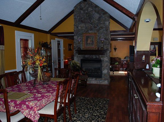 Remodled home is located on 3.8 acres in Turkey, NC--Sampson County. A large double faced mountain rock fireplace with gas logs separates living and dining rooms. It has a large capacity stone-lined hot water heater. Built-in lighted china cabinet for displaying.