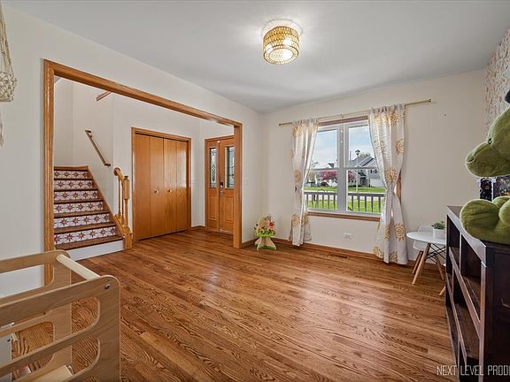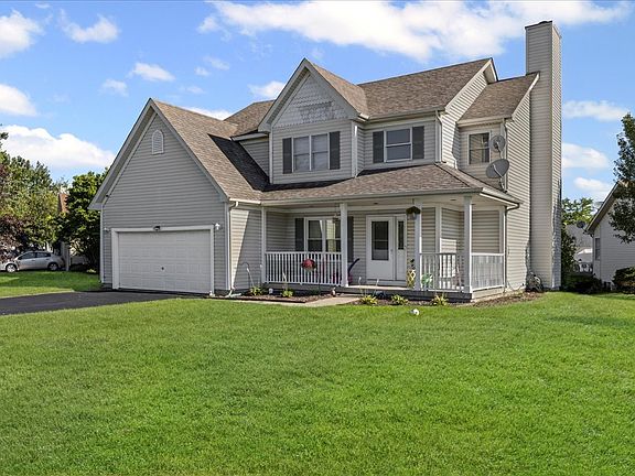 **Multiple offers received, H&B Monday @ 8am!** Welcome to this beautiful 4-bedroom, 3.1-bathroom home. Full of charm and modern comforts with endless updates! From the moment you arrive, you'll be greeted by a classic wrap around porch, perfect for morning coffee or evening relaxation. Step inside to find fresh paint and newly sanded and stained hardwood floors (2023) flowing throughout the main level. Leading to a brand new kitchen (2024)- with a quartz island that comfortably seats 7. The kitchen overlooks the living room with a wood-burning fireplace perfect for entertaining! Off the living room is the three seasons room with vaulted ceilings offers a peaceful retreat with plenty of natural light. The formal dining room currently serves as a perfect playroom! The newly renovated first floor laundry room and powder room adds convenience (both 2024). Upstairs, you'll find four spacious bedrooms with new LVT flooring throughout. The luxurious primary suite features vaulted ceilings, two walk-in closets, and a spa-like bathroom with a soaker tub, separate shower, and double vanity. The partially finished basement (painted 9/2025) includes a full bath and offers endless potential for a home gym or entertainment space, ready for your finishing touches! Outside, enjoy gatherings on the deck (stained 8/2025). This home is move-in ready, thoughtfully upgraded, and full of potential! Schedule your tour today! Prairie Ridge Drive Park 300ft away and can be seen from your front porch! Close proximity to the Woodstock Square, train station and route 14 making errands quick and easy! Over 65K in upgrades, ask your agent for a full list of upgrades!