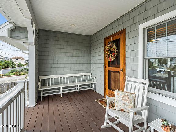 Welcome to a custom, cozy waterfront retreat in the coveted Bay Head Shores neighborhood of Point Pleasant. Completely rebuilt to the raised foundation in 2014, this home pairs refined design enhanced with modern sophistication just minutes from beaches, the boardwalk, and downtown shops. The main floor showcases 9 foot ceilings, rich oak hardwood floors throughout, elegant mahogany doors, a sun porch to soak up the water views from inside and a generous primary suite with two walk in closets and a spa style full bath. Access to laundry and a spacious office complete the list for ideal first floor living. The gourmet kitchen boasts sleek cabinetry, quartz counters, stainless appliances, and a generous island. A graceful gas fired hearth with built ins set the tone for the timeless living room, where wide openings to the kitchen, dining area, and sun porch maintain a sense of airy charm and effortless togetherness. Upstairs, find four more bedrooms, a family room, a full bath, and access to a large attic with finish potential. The deep 55x120 lagoon front lot features a private yard with an expansive deck, vinyl bulkhead with 10k boat lift and room for a pool. Optional Bay Head Shores Property Owners Association membership includes bay front beach, clubhouse, tennis, and marina slips.