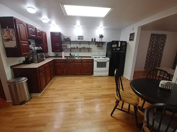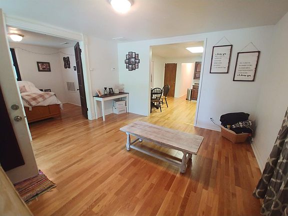 Super cute home with nice front porch has vinyl siding, garage with opener, and a shed! Full bath with new vanity. New flooring, pretty cabinets in eat-in kitchen with refrigerator and stove. Move-in ready!