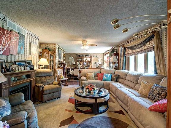 Great location and Amazing curb appeal + Over ½ acre lot with this west-side home. Mature trees provide an abundance of shade and the living space extends to the outside with a front porch, backyard patio and a covered deck. An added bonus is the huge 46x24 detached garage with plenty of space for 4 cars, this in addition to the attached 2-car. The home features Formal LR & DR and an open concept Hearth room (with wood-burning FP) & Kitchen sporting an Island, pantry, wood laminate floors. All appliances stay. Close by is an oversized mudroom/ laundry with convenient ½ bath. You will find double closets in the Master Suite along with tile flooring in the Master bath. Finishing out the main level are 2 additional BRs and a hall Bath boasting a jetted tub and stand-alone shower. Another large Family Rm is located in the partially finished basement with a wood-burning FP. Fenced yard, well, sprinkler system. New windows & patio doors. Newer AC. Goddard Eisenhower Schools! Dont miss out on this well-built home - Call to schedule your private showing today!!