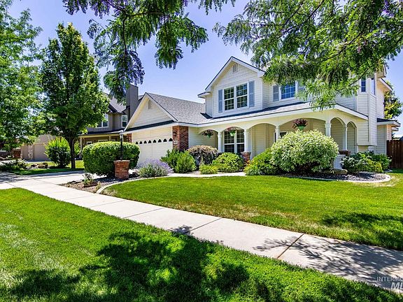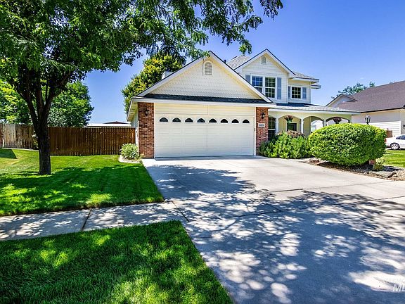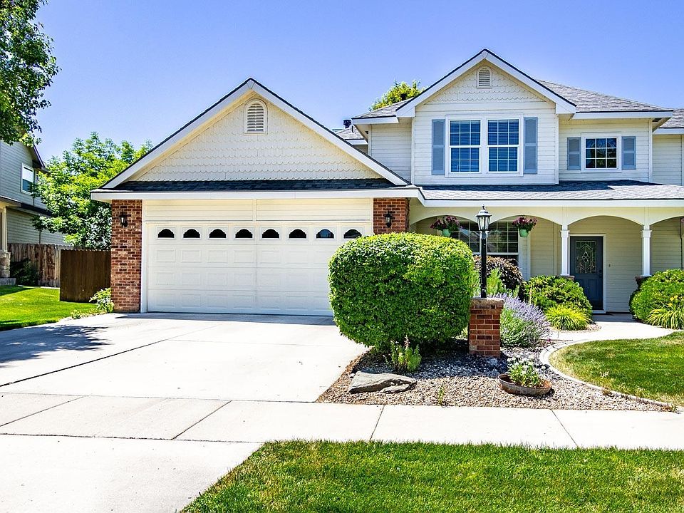 A dream wrap-around porch welcomes you into this fantastic custom built home on a large lot in beautiful Fall River Estates! Inviting living room with fireplace, along with an additional living space on the main floor that can be used as a family room, den, office, or formal dining! Kitchen features the convenience of two ovens, island, and a breakfast bar. Relax in the generous master suite complete with fireplace, an oversized tub, separate shower, dual vanities plus make-up vanity, and a convenient laundry shoot. The second bay in the garage is a tandem design for additional storage, a fantastic workspace, or parking. Peaceful oversized backyard with hot tub and propane hook-ups, garden space and no back neighbors-- home is adjacent to the Elementary School grounds. Great opportunity to own a home in this sought-after neighborhood with winding walking paths, access to the adjacent elementary school, and large common areas with mature landscaping- close to Lake Lowell, parks, shopping, and schools!