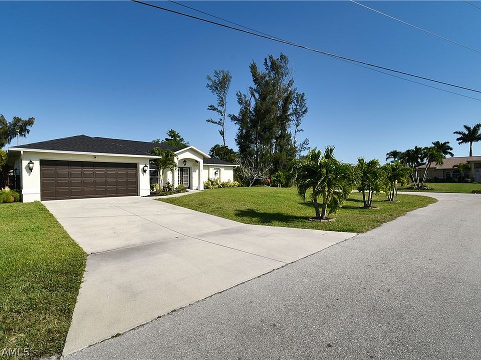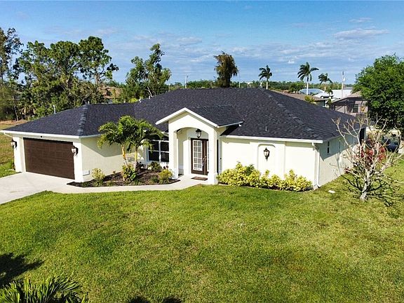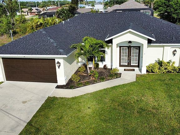 Price reduced! This is truly a one of a kind freshwater canal home located in Southwest Cape Coral. The home sits at the end of the street on an oversized corner lot. There is a great view from the concrete dock and it's only a short boat ride to Alhambra Lake, Lake Kennedy, Saratoga Lake and Shamrock Lakes. This Freshwater system is connected to several lakes and miles of canals, great for fishing and kayaking. The kitchen is equipped with stainless steel appliances and a laundry room with front load washer and dryer. This 3bed, 2bath, 2 car garage home with a vaulted ceiling in the living room, comes with modern fans and light fixtures throughout the house. It shows very bright and is ready for the new owners. It could be a primary residence or your second home, your choice. The large screened lanai is perfect for you to enjoy the Florida weather and entertain family and friends. The large backyard has definitely room for a pool. New roof in 2023. Hurricane storm shutters. Sprinkler system. All assessments are in/paid and best of all not in a flood zone, so flood insurance is optional. The property is centrally located to supermarkets, shopping, and easily accessible to Fort Myers via the Midpoint Bridge. Don't delay and call for your private showing today!