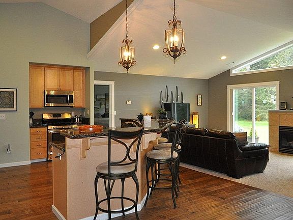 Lake Front home on 1.29 acres. One story, 3 Bedrooms plus Den or possible 4th bedroom, 2 full baths, 4 CAR GARAGE w/shop area. Large kitchen w/granite, stainless appliances & gas range. Kitchen island & eating bar is open to the Living room, private dining room. Carpet, slate & hardwood floors. Hardwired ethernet throughout the house. Fenced garden with raised beds, irrigation system for the yard and shed with power. RV parking with 50 amp plug and shore ties. Kayaking & fishing from your backyard. This home is glorious