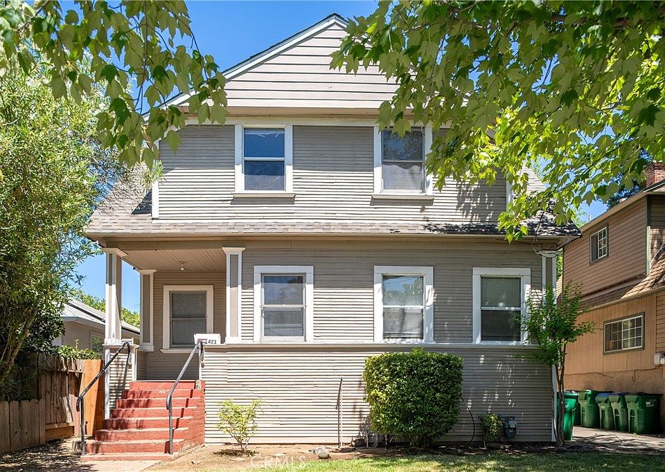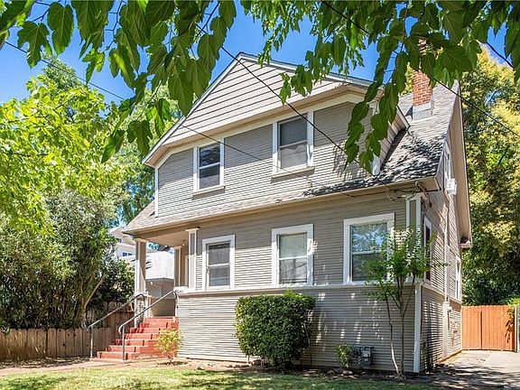 Classic Barber District property that is located close to Chico State University, Downtown Chico, shopping, restaurants, Farmers Market, and Bidwell park. This home has a brand new roof, has had a lot of dry rot repairs done to the exterior, a brand new back porch, and a ductless air conditioner and heater in the living room. Inside there is one bedroom and a half bathroom downstairs along with inside laundry, kitchen and dining/living space. Upstairs there are two large bedrooms and a full bathroom and some storage space. Outside is a blank slate. There is a very old building in the back that was lived in for years but is in pretty rough shape. In its place, there is plenty of room to add an ADU or a garage with an apartment over it. There is alley access and the alley is paved. Great place to live or have an investment property.
