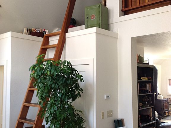This 2 bedroom home is snuggled near the mountain side. The home sits on 1.5 lots and has a large storage shed in the back. The home has forced air LP gas, and a propane gas firestove. There is a large loft overlooking the living room.