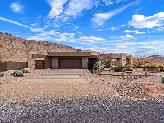 Luxury at its finest. Stunning, impressive. Incredible, breath-taking views. Architecturally pleasing, modern and sleek. Well split visitor floorplan. Flex room can be used as a 3rd bedroom. Private, secluded cul-de-sac. Horse property. No HOA. Perfect for horse, golf, lake and ATV activities. Evenings by the fire-pit enjoying fire in the sky and copper cliffs. Convenient to town, Airport, Hospital, Zion, Copper Rock Golf Course, Sand Hollow Lake, Sand Mountain ATV recreation area and BLM land. Uninterrupted Jeep and ATV dirt road access to the Grand Canyon. Storage room and storage in garage. Furniture included. Home is 2nd home. Property taxes reflect 2nd home assessment.