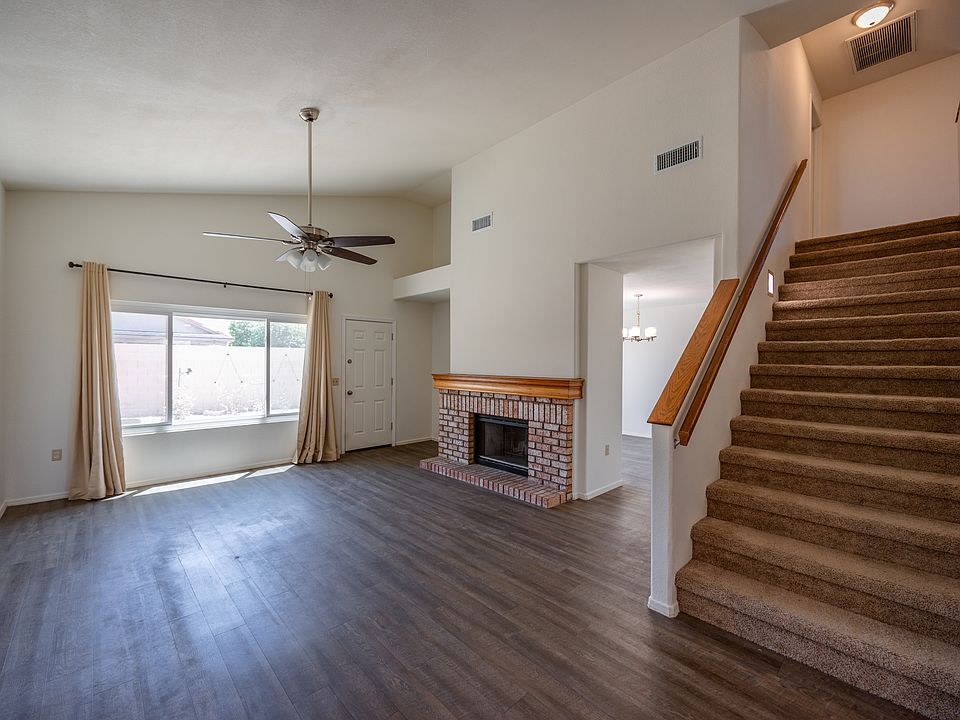 Chandler living 1st Floor Master Suite, Loft, and Private Pool! Welcome to this spacious 3-bedroom, 2.5-bath home nestled in Chandler's desirable Crescent Village community. With 1,951 square feet of stylish living space, this residence offers a blend of comfort and elegance, starting with luxury vinyl plank flooring, two-tone interior paint, vaulted ceilings, and ceiling fans throughout for year-round comfort. A cozy fireplace anchors the main living area, while the formal dining room and eat-in kitchen with breakfast bar provide the perfect setting for entertaining. The kitchen is beautifully appointed with a farm sink, granite countertops, stainless steel appliances, and Argon-filled double hung windows and patio door that bring in plenty of natural light. The first-floor master suite is a private retreat, complete with a full en-suite bathroom, dual sinks, a separate soaking tub and shower, a spacious walk-in closet, and direct exterior access. Upstairs, you'll find a versatile loft living area and two additional bedrooms along with an updated bathroom. The laundry area comes equipped with a washer and dryer for added convenience. Step outside to a serene covered patio that overlooks a Pebble Tec pool, ideal for relaxing or entertaining. Enjoy access to Crescent Village community amenities, including a basketball court, tennis court, park, and playground. A 2-car garage completes this exceptional home. Conveniently located near Chandler Regional Medical Center and the new Banner Hospital systems, this home is also close to major employers, shopping centers, and top-rated schools, making it an ideal choice for professionals and families alike. ANIMALS No animals. UTILITIES Electric: SRP Gas: NA Water/Sewer/Trash: City of Chandler OTHER SERVICES Pool Service: Paid by owner Lawncare: Paid by owner Rooms and Interior . Loft layout . Vaulted ceiling . Carpet floors . Fireplace . Family room . Living room . Dining room . Formal dining room . Walk-in closet . Ceiling fans . Master bath Kitchen and Bath . Granite kitchen counters . Electric stove/oven . Vinyl floors . Eat-in kitchen . Breakfast bar . Stainless steel appliances . Dishwasher . Refrigerator . Microwave . Garbage disposal . Pantry . Soaking tub . Separate tub and shower Utilities and Extras . Central heat . Central air conditioning . Garage parking . Washer/dryer included . Cable ready . Internet access available . Not furnished Building and Surroundings . Back porch . Private patio . Yard . Fenced yard . Swimming pool . Outdoor pool . Tennis court . Playground . Walking/biking trails . Basketball court . Park nearby Lease Terms . Tenant pays all electric . One year lease . No smoking . 6 parking spots . No dogs . Tenant pays trash removal . Tenant pays water/sewer Contact Us: J. Scott Property Management