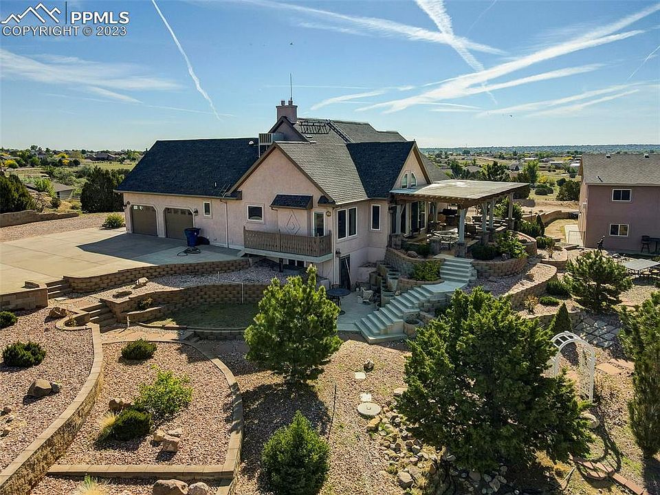 This stunning home sits on a spacious 2.2-acre lot, offering breathtaking views of the surrounding area. The property boasts 4 spacious bedrooms and 5 bathrooms, making it the perfect home for those who love to entertain. The large detached garage is a true gem, featuring RV storage and separate sleeping quarters with 1/2 bath that is perfect for hosting guests or accommodating extended family. This unique feature adds an additional layer of versatility to this already remarkable property. Inside, the home is beautifully designed and decorated, with plenty of natural light streaming in through large windows and the serene enclosed patio room. The floor plan creates a seamless flow between the living spaces, making it easy to entertain guests or spend time enjoying this lovely retreat. The kitchen is a chef's dream, with high-end appliances, plenty of counter space, and an island that provides the perfect spot for culinary preparation. The bedrooms are spacious and comfortable, each with its own unique charm and character. Outside, the property is just as impressive. The expansive yard offers plenty of space for outdoor activities and gatherings, while the surrounding views provide a sense of tranquility and relaxation. Beautiful landscape and hardscape provides the most novice to expert gardener the opportunity to grow their green thumb. Whether you're looking for a peaceful retreat or a home that's perfect for entertaining, this property is sure to impress.