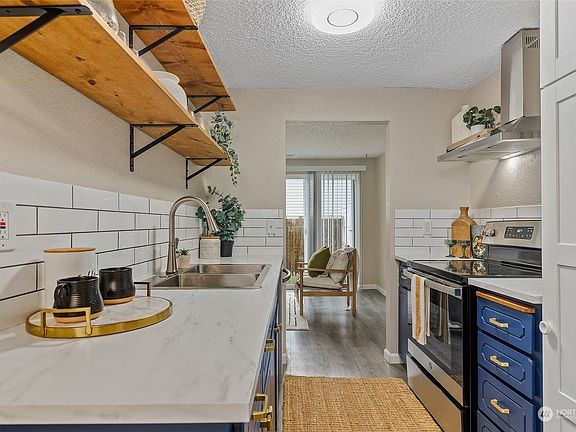 Stylish, updated, move-in ready condo home just minutes to Mukilteo, I-5 & Boeing. Low HOA dues, pet friendly, new roof, updated plumbing and wiring, new LED lighting, LEVOLOR blinds, interior doors and paint. Main floor includes a galley kitchen with stainless steel appliances and subway tile backsplash; a dining area that is perfect for entertaining, with an adjacent, 1/2 bath/powder room, and a spacious living room that opens to a private garden and patio. 2nd floor includes a light-filled primary bedroom with large walk-in closet, ensuite full bath with glass tiles and modern finishes, as well as newer washer/dryer. 2nd bedroom is spacious with newer carpet. Next door is a bonus room for your home office or storage.