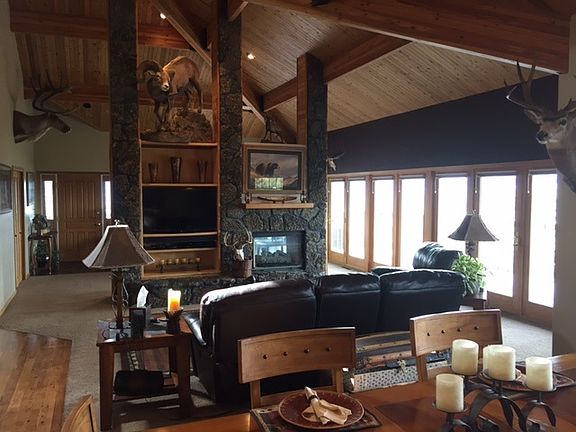There is nothing like this home! Offering nearly 4000 sf of finished space this Lindal Cedar home has a terrific layout. The master suite contains a bedroom and bath with vaulted ceilings and on on suite office that could easily be used as a nursery or workout room. The great room is highlighted by an open beam concept with a two way fireplace. The basement is a walkout design with billiard room and very nice sized bedrooms. The views from the deck is awesome with the Pintlers, Highlands, and many others.