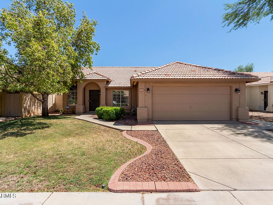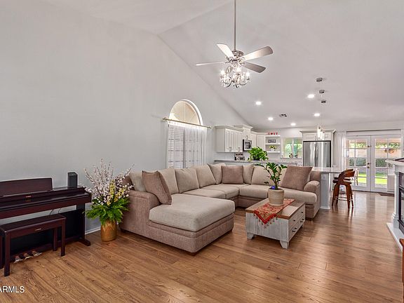 Welcome to this charming home perfectly designed for modern living and entertaining. Beautifully updated, this home has an open layout with vaulted ceilings, designer lighting and engineered wood flooring. Remodeled kitchen is the heart of the home, featuring custom crafted white cabinetry, granite countertops, SS appliances, farmhouse sink, island and breakfast bar. Large master with ensuite bath, dual vanities, garden tub and walk in shower w/ Dreamstyle bathroom surrounds. Step outside into your private oasis: a sparkling pebbletec pool, a meticulously landscaped backyard with covered patio, misting system, sunshades, turf & brick pavers this outdoor space is ideal for relaxation and summer fun. Energy efficient owned Solar. Elegance & comfort makes this the perfect place to call hom