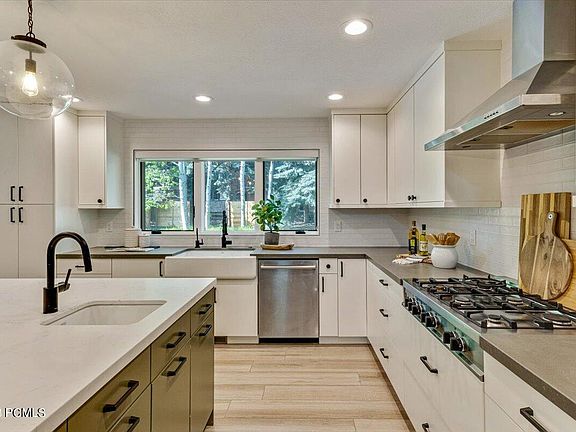 Step inside to discover a bright, open floor plan tastefully redesigned in 2018. The spacious kitchen has stainless steel appliances, including a new fridge/freezer, stovetop, oven, steam/convection oven, and wine fridge. This welcoming atmosphere is bathed in abundant natural light with the adjoining great room and breakfast nook. You can easily access the expansive backyard and patio from here, which is perfect for outdoor entertaining or enjoying the serene surroundings. The private primary suite features a generous walk-in closet and an ensuite bath that invites relaxation. Unwind after a long day with the luxury of a steam shower, radiant bathroom flooring, and mountain views.
