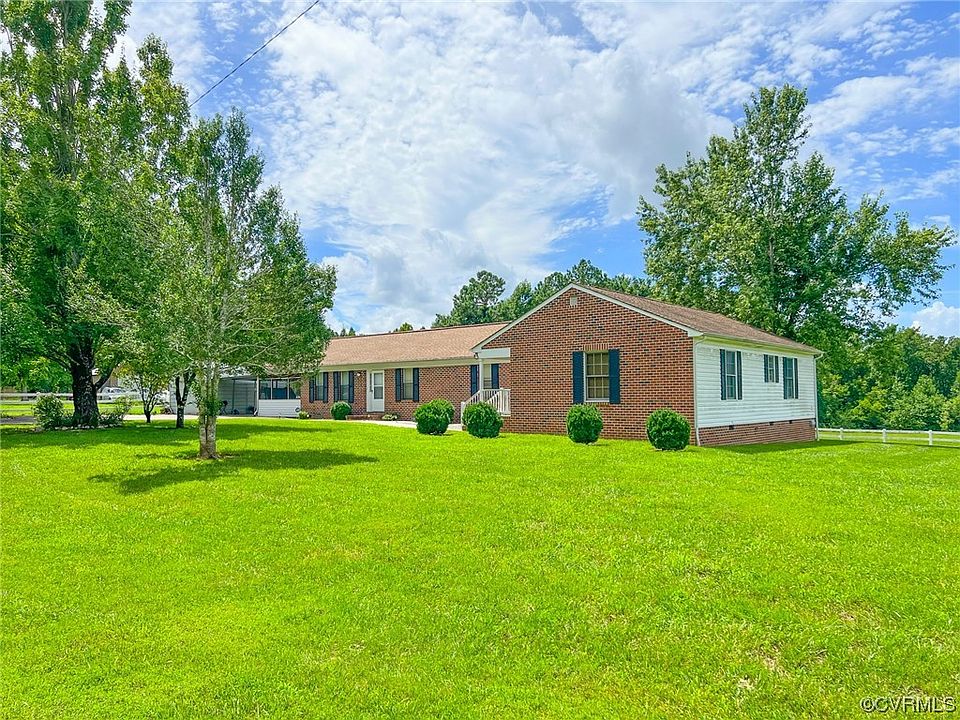 This spectacular ranch style home on nearly eight acres of beautiful southern Virginia countryside checks all of the boxes! This modern home boasts four very large bedrooms and three full baths! Step in to the entryway and you are greeted with a spacious living room that is a great place to gather! The adjacent eat-in kitchen features plenty of cabinet and counter space as well as all of the necessary appliances. The primary bedroom is so big! It easily accommodates a kingsized bed, all of the accompanying furniture and still leaves space for more. It has a walk-in closet as well. The attached bathroom is pretty great! You can relax and unwind in the jetted soaking tub or make use of the step in shower. The home also has a second bedroom suite with attached full bathroom. The remaining two bedrooms are a large size and share the use of a very nice hall bath. Enjoy warm summer evenings relaxing on the screened-in porch or enjoy a picnic on the patio with a beautiful view of the hay field. The home is kept cozy all year long with two zone heat pumps and cool central AC. The location is superb just minutes form Blackstone and an easy drive to routes 360 or 460. Come see it today!