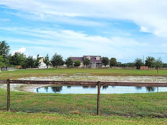 Custom Home Built in 2006 on 5 Acres with Stocked Pond which is a wonderful view from the (31 x 9) Newly Screened In Front Porch just bring your Rocking Chairs! No Deed Restrictions so Bring the Toys and make use of the 1,296 SF Outbuilding 36 X 36 / Garage / Shop with Roll Up Doors on Both Ends. In addition the attached 2 Car Garage is Oversized at 693 SF, (27X25) totally enough garage space to park 6+ cars!! Beautifully Maintained this 3 bedroom with Office, 2.5 bath home has New Roof Home & Building in 2019, New Hardie Board Siding in 2019 on the Home, New Pool Heater, New Pool Screening 2019, New Hot Water Heater September 2018, AC in 2013, New Water Softener 2018 and Septic Drainfield in 2015. Through the Foyer Entry Welcome you will notice the Custom Wood Casement Windows Throughout, Built in Wood Shelves in All Closets, 8' Interior Doors, 10' Ceilings, Surround Sound Wired, Insulated Interior Walls & Security System. Real Wood Floors thru the Main Living Area, Open Kitchen with Breakfast Bar & Dining Nook, Formal Dining Room, Spacious Master Suite with Double Door Entry, Walk in Closets and Private Bath with Double Sink, Spacious Walk in Shower and Garden Tub. The French Doors lead to the Spacious Lanai (34x29) where you will find the Caged Heated Pool with Waterfall Feature overlooking a wonderful private setting. The exterior features Seamless Gutters, Fenced Pastures with Electric & Water, Lightning Protection on the Home with additional protection of 150 foot radius, Well Equipment Protected & Covered and an Outdoor Fire Pit! Myakka Technologies is available and the Well is 120 feet deep. TV & Bracket in Master Bedroom Stay, Gun Safe and Office Furniture Stay.