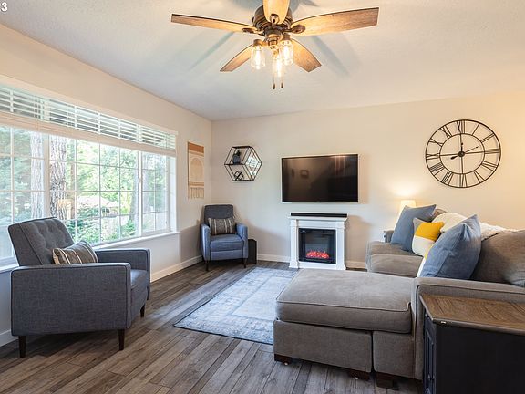 Welcome to this 2003 MOVE-IN READY home with HUGE 4th bedroom (or bonus), 2 ½ bathrooms! Great River Road location close to two boat launches and parks along the river. Enjoy living appx ½ mile from historic Trolley Trail (connects to Springwater Trail), parks, shopping, restaurants, & appx. 1 mile from MAX station. Every room and garage beautifully updated with interior paint, luxury vinyl plank flooring, light fixtures, vanities, toilets, French doors, epoxy floors in garage! Double closets & high-speed fiber internet in 4th bedroom/bonus. Kitchen has quartz counters, gas stove, 2020 dishwasher. Furnace motor replaced in 2021. Smart features include thermostat and Ring doorbell. All appliances included in sale! Fenced yard, shed, parking pad for two standard sized cars along fence.
