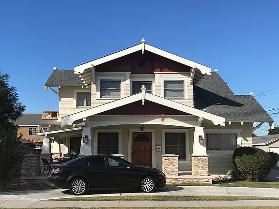 Glorious 6 bedroom and 3 bath true Craftsman home, plus 2 garage spaces on an oversized lot with an abundance of parking, even room for an RV and a boat. You will love the large wrap around front porch. Open the impressive front door to the beautiful wood floors that were just refinished, rich wood beamed ceilings, plaster walls and striking wood built-ins thru-out the house. The formal living room has newly re-finished rich wood floors, wood beam ceilings, pocket doors and a handsome fireplace for even more warmth. An elegant formal dining room with built-in china cabinet will inspire you to invite guests for dinner and the cheery, retro kitchen with brand new checkerboard floors, new counters, a six burner stove top, oven, new dishwasher, new farmhouse sink and fun breakfast booth will make cooking fun. A spacious laundry room is right next to the kitchen and 2 spacious bedrooms and a full bath adorn the first floor. Walk up the splendid wood staircase to 4 more bedrooms, 3 of which have walk-in closets. An updated bath with large shower is at the top of the stairs. New upscale carpeting in all the bedrooms. Newer furnace and up-dated plumbing. This large property also has 2 garage spaces and an abundance of parking on this oversized lot. There is also an unattached ADU apartment (2Bd/ 2Ba) available for $2700.00/m. Owner will pay for grass, tree, and bush trimming. All utilities will be the responsibility of the renter. No smoking.