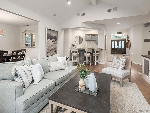 Welcome to the coveted gated community of Stratford, where you will experience single-level living at its finest. Conveniently located right across from Fairbanks Country Club and around the corner from world-renowned Rancho Valencia resort. High ceilings and large windows flood this home with natural light throughout. Elegant custom wood doors and shutters, pristine hardwood floors, and Sonos surround sound exude the quality of materials used as well as the meticulous care the sellers have taken on this beautiful property. The home boasts a large private backyard, built-in barbecue, two fireplaces, a bar perfect for entertaining, skylights, outdoor shower, new roof, and so much more. This home is a must see!